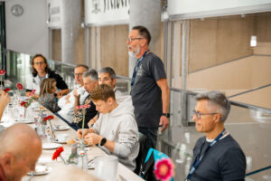 Beim anschließenden Frühstück in der Ballsportarena haben wir uns über aktuelle Ergebnisse und Geschehnisse in der Laufsport-Welt, sowie das laufende DRESDEN-MARATHON-Wochenende 2025 ausgetauscht, welches gerade in vollem Gange war.