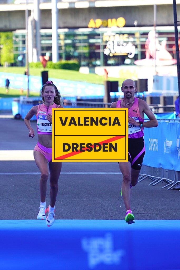 Seit ihrem Sieg in Köln standen wir in engem Austausch mit Hendrik Pfeiffer, der nun die einmalige Chance hat, seine Frau beim Valencia Halbmarathon zu pacen – einer der schnellsten Strecken der Welt, auf der bereits mehrere Weltrekorde aufgestellt wurden. Der Lauf in Spanien, bekannt für Bestzeiten und ein internationales Spitzenfeld, findet in diesem Jahr jedoch am selben Wochenende wie der 25. DRESDEN-MARATHON statt.